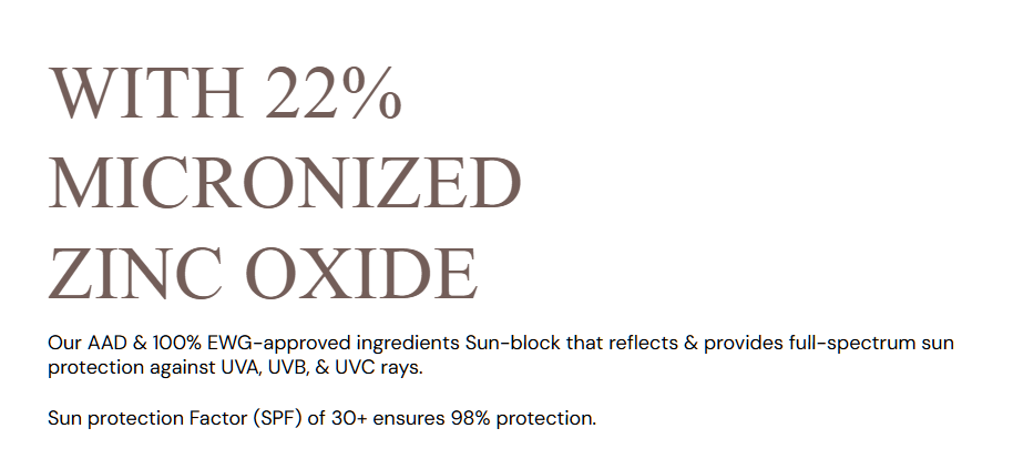 Amazing sunscreen with amazing ingredients. I just listened to a podcast about choosing and deciphering good (and good for you) sunscreens. The zinc oxide percentage is right on (all good sunscreens should have 18-25% zinc oxide). All of the other all natural ingredients are so beneficial for sun protection and skin health. It soaks nicely into my skin and doesn't leave a white residue cast.